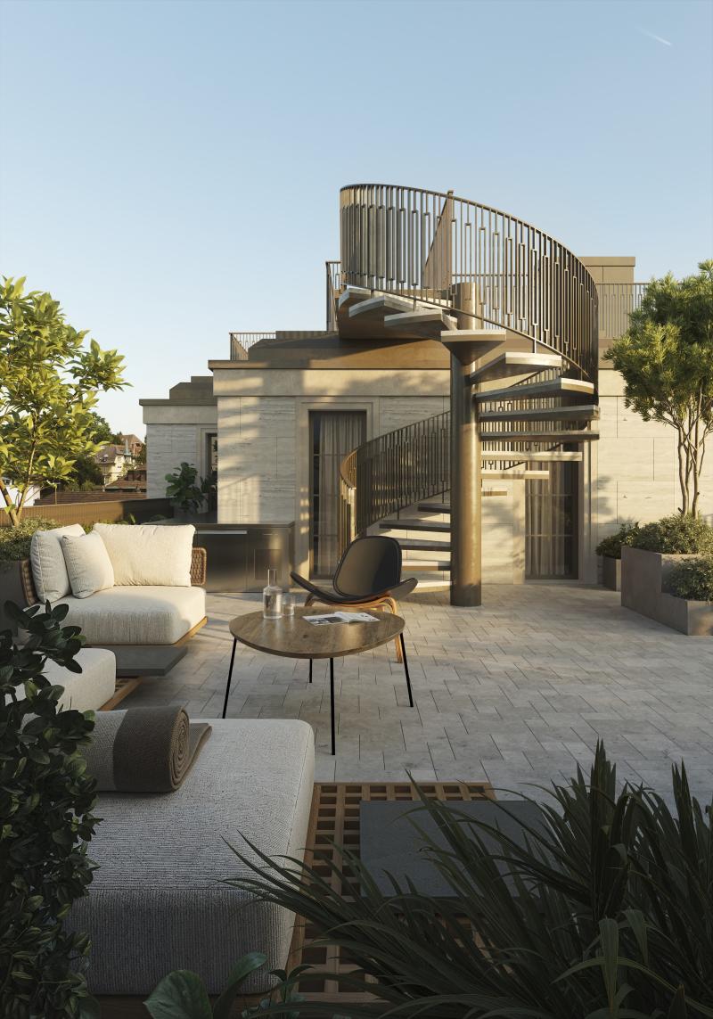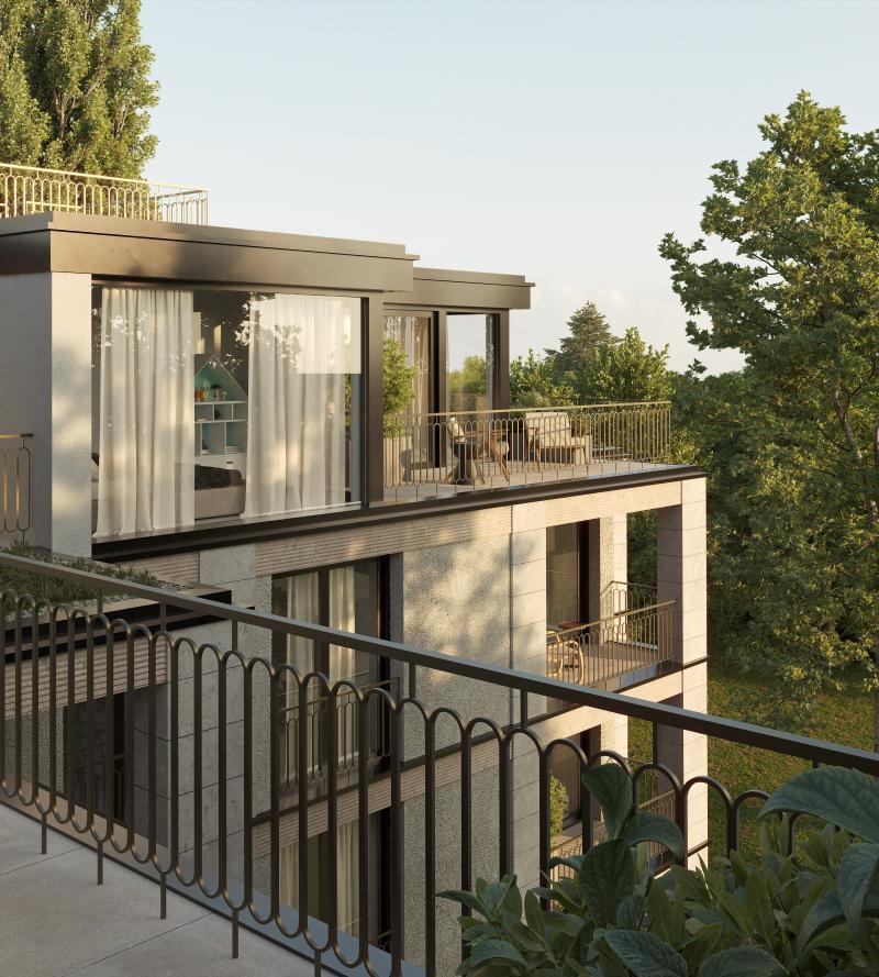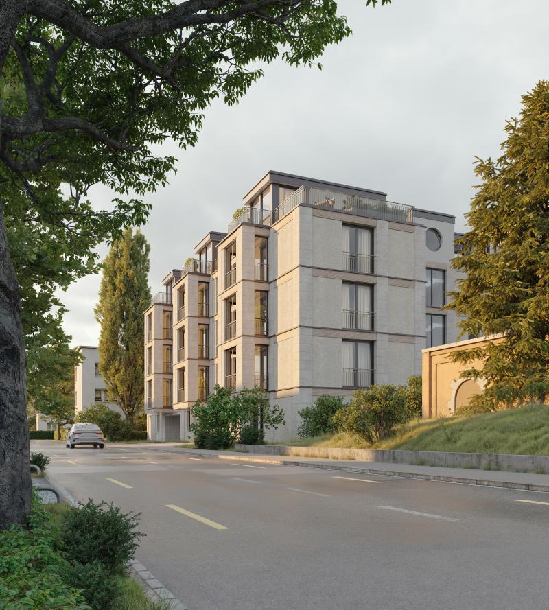 Unser Mehrfamilienhaus an der Ecke Waffenplatz- und Weltistrasse hat die Baufreigabe erhalten und wird voraussichtlich Anfang 2027 bezugsbereit sein. Im Zürcher Quartier Enge entsteht ein Neubau in einem historisch vielschichtigen Kontext zwischen Villen und Wohnbauten des frühen 20. Jahrhunderts. Der Bau interpretiert den Zürcher Jugendstil in zeitgemässer Formensprache und entwickelt mit Travertin, Beton und Naturstein sowie einer differenzierten Wohnstruktur von Mietwohnungen bis zur Attikawohnung einen eigenständigen Baukörper im Dialog mit seiner Umgebung.