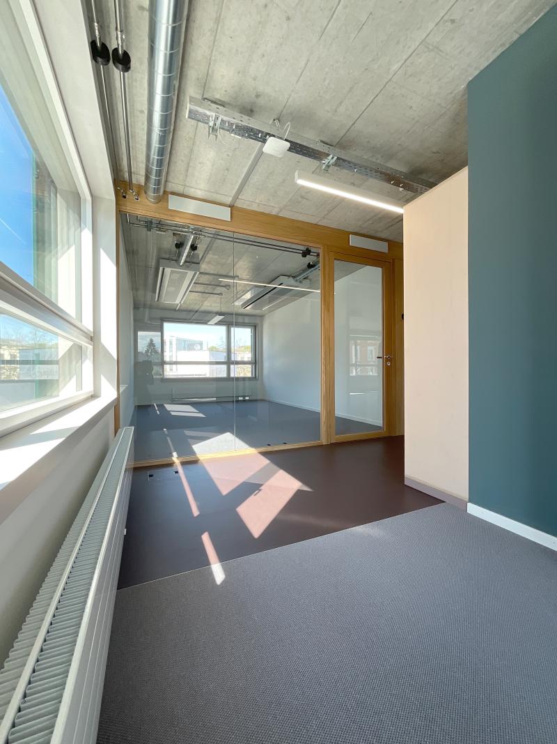 Für die ABZ (Allgemeine Baugenossenschaft Zürich) realisierten wir als Architekten und Generalplaner einen neuen Aussenposten ihrer Geschäftsstelle im Hochhaus Hoch3 in Zürich-Wiedikon. Die Sanierung des Hauptsitzes an der Gertrudstrasse folgt. Die Büroerweiterung als Open Space bietet flexible Arbeitsplätze, Besprechungsräume und Silent Boxes und wird über hybride Deckensegel technisch und akustisch optimiert.