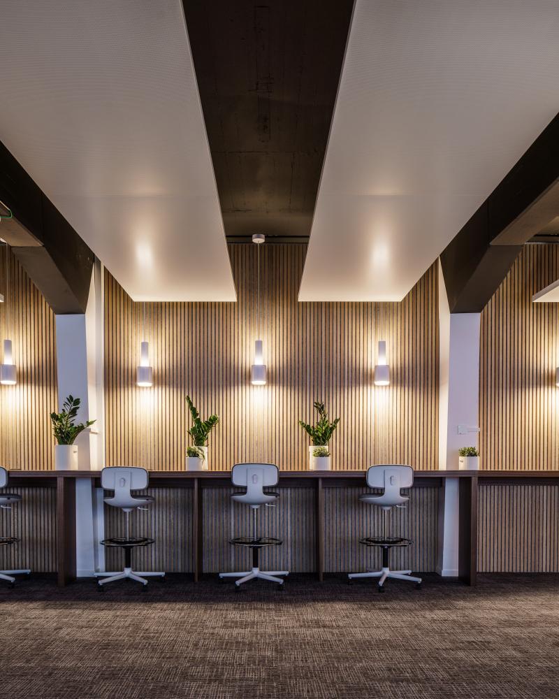 Für eine internationale Unternehmensberatung durften wir im Zürcher Kreis 4 den Innenausbau als Generalplaner und Architekten gestalten und umsetzen. Die Büroflächen wurden vollständig neu organisiert und zu einer modernen Arbeitsumgebung mit unterschiedlichen atmosphärischen Zonen entwickelt. Das Zusammenspiel von hellen und dunklen Materialien, sichtbar geführter Haustechnik im industriellen Stil sowie akustisch wirksamen Elementen schafft eine funktionale und identitätsstiftende Innenarchitektur.