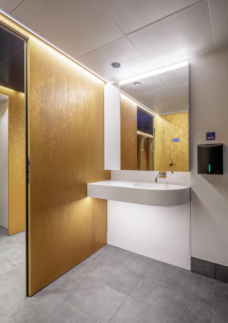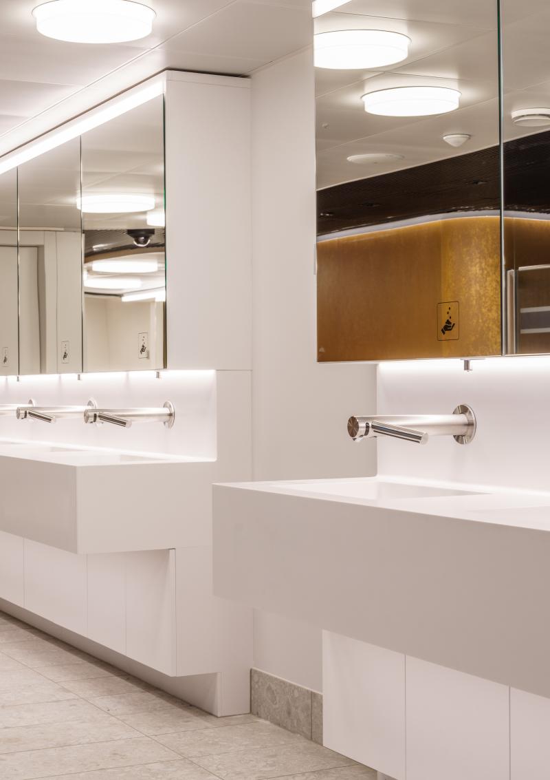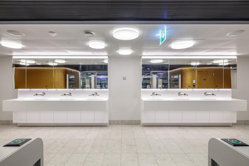 Im Herzen des Zürcher Hauptbahnhofs haben wir im Zuge des SBB-Redesigns ein Hygienecenter geschaffen, das Gestaltung, Funktionalität und hohe Frequenz in Einklang bringt.