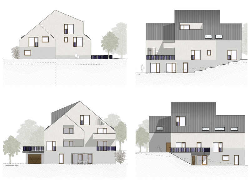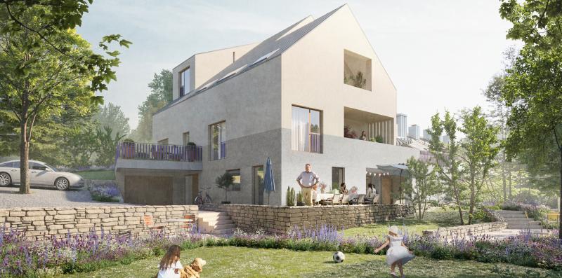 Fein gegliederte Volumen und terrassierte Freiräume